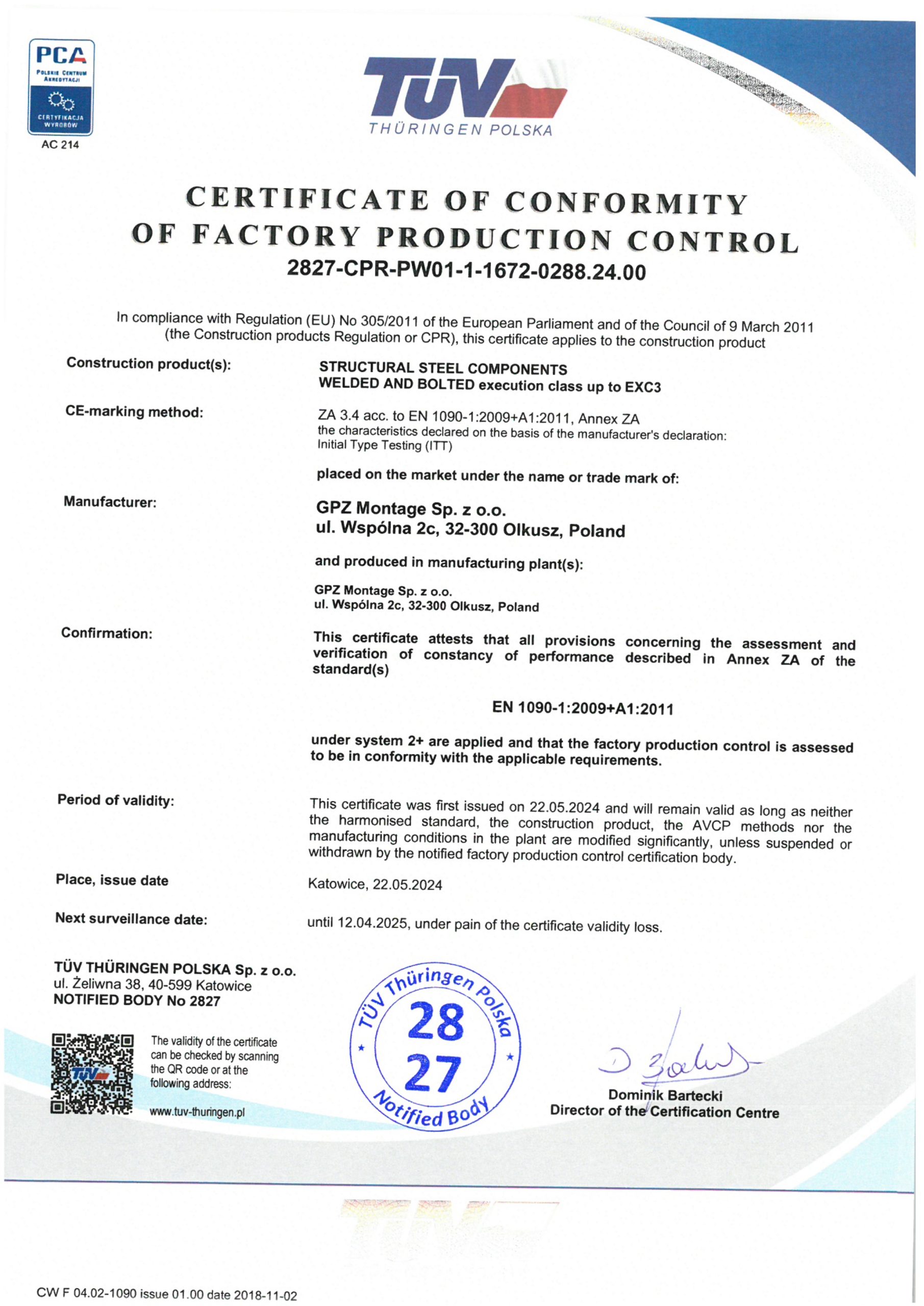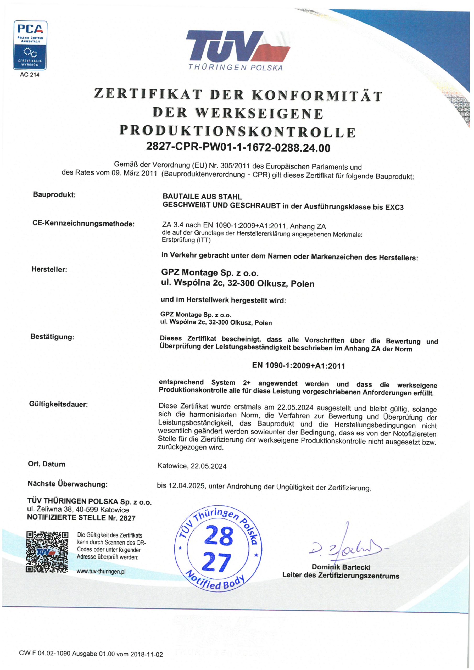EN 1090-1:2009+A1:2011EN ISO 3834-2:2021